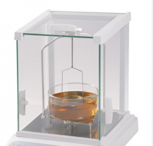②將樣品完全浸入水中,測水中重量,按M鍵記憶,直接顯示密度值。